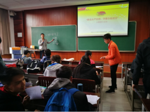 共青团十七届六中全会1月9日至10日在北京召开。全会深入学习贯彻习近平总书记系列重要讲话精神,认真学习贯彻党的十八届六中全会精神,认真学习领会中共中央书记处重要指示和李源潮同志的重要讲话,围绕大力推进从严治团这一主题,研究并审议通过了关于从严治团的决议和规定。为了更深刻的理解这一主题,我们召开了此次活动。 2017年3月22日下午五点四十五,在第一教学楼开展了《推进从严治团,争做合格团员》团日活动...