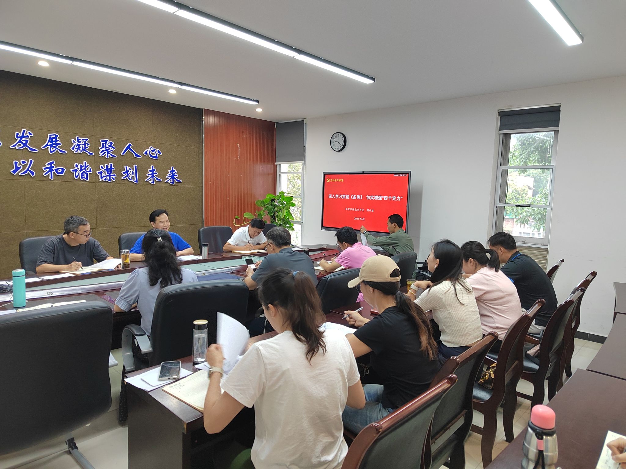 2024621日上午,为扎实推进主题教育,深入学习贯彻习近平新时代中国特色社会主义思想,进一步巩固党学习教育成果,不断提高党员干部的党性修养,凝心聚力促发展,52AV 党委明兴建书记以“深入学习贯彻《条例》  切实增强“四个定力”为主题讲授了专题党课。学院领导班子成员、党委委员、纪委委员、各系(中心、室)主任、各党支部书记、党委组织员等近20人参加会议。