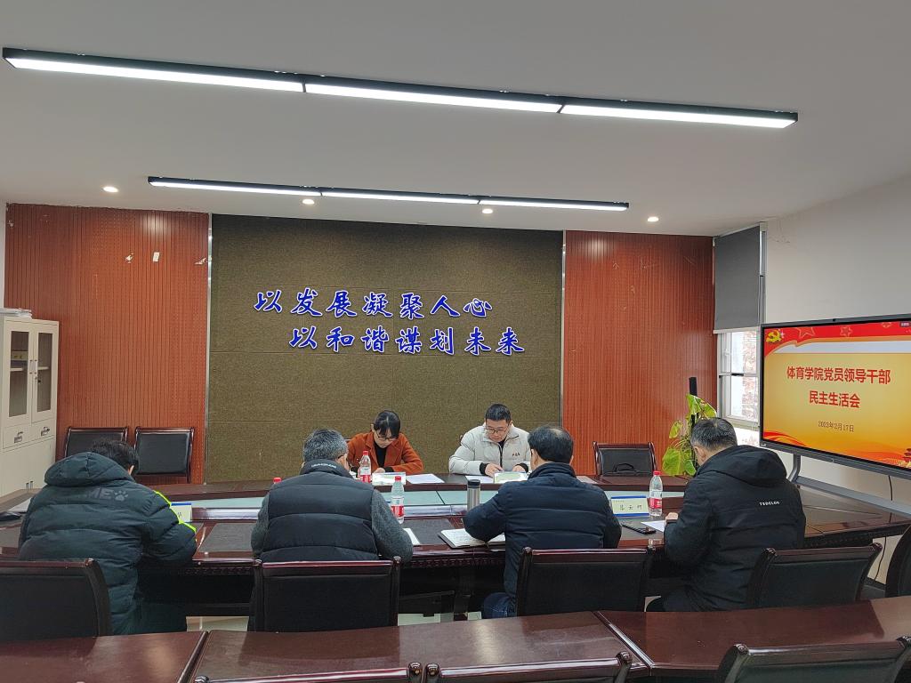 领导班子作表态发言。班子成员遵循“团结-批评-团结”的原则,开展批评和自我批评,深刻查找了自身在带头深刻感悟“两个确立”的决定性意义,增强“四个意识”、坚定“四个自信”、做到“两个维护”。从六个带头方面查找存在的问题,剖析了产生问题的根源,同时帮助其他同志指出了存在的问题。这次民主生活会开得严肃认真、质效明显,达到了锤炼党性、查摆问题、明确方向、交流思想、增进团结、促进工作的目的。会后,我们要对自己查摆的问题和同志们提出的批评意见进行认真梳理,以钉钉子的精神,持续推进问题整改,共促发展。深刻领会和宣传贯彻党的二十大精神,树牢健康第一的教育理念,以进一步浓厚校园体育文化氛围,推动校园全民健身活动蓬勃开展,促进师生的身心健康,更好发挥体育在学校人才培养中的作用。