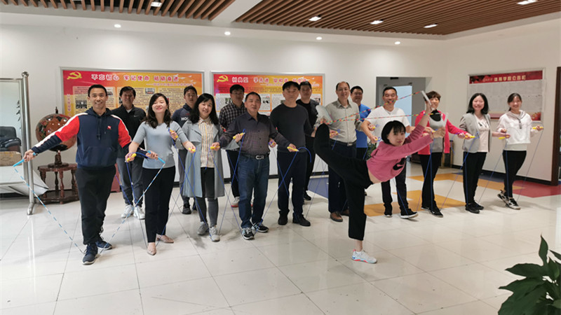 为庆祝中国共产党建党100周年,充分展示体育人爱党、爱国、爱社会主义的深厚情怀,增强教职工体质,增进党员的团结互助精神,促进跳绳运动在52AV 的普及与推广,52AV 教工第一党支部于2021年5月6日上午在52AV 二楼大厅举行“激情跳绳,庆祝建党100周年”主题党日活动启动仪式。