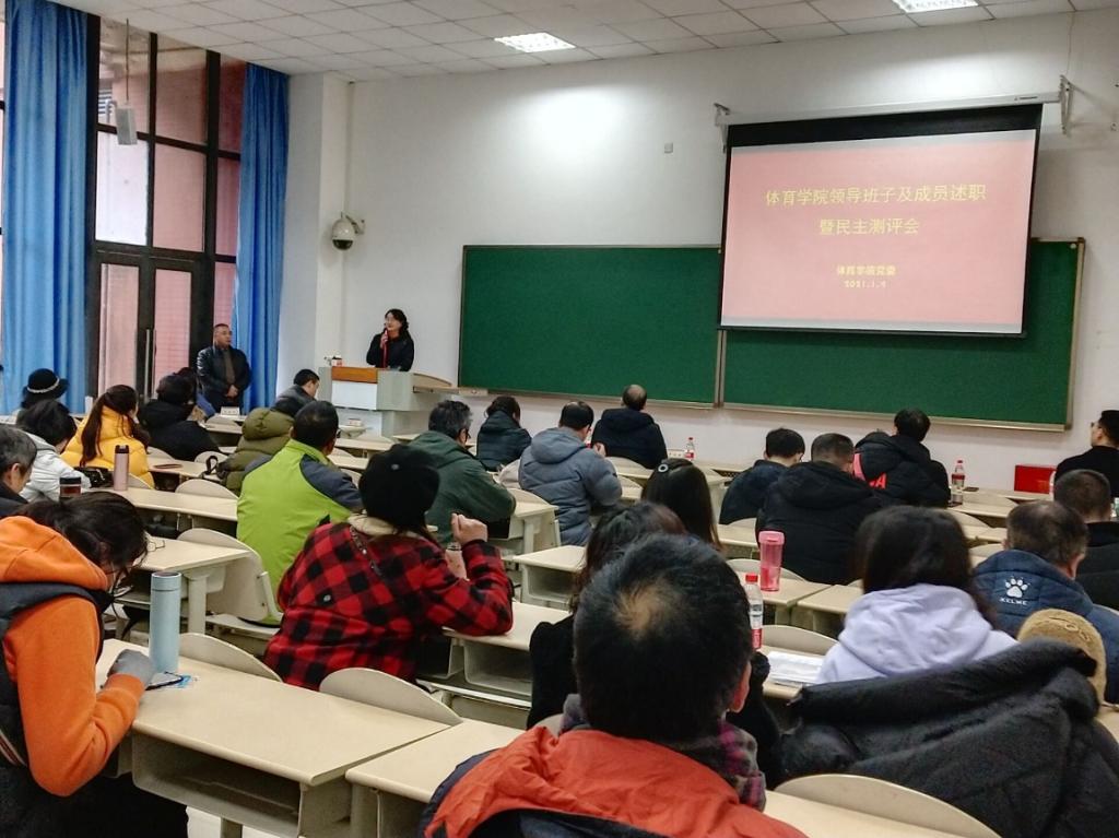 随后学院党政领导班子成员邱荣富、许定国、李永、落云柯、潘建华逐一对自己一年来在德、勤、能、绩、廉等方面情况作了全面客观汇报,认真查找和剖析了自身存在的不足,并提出了今后的努力方向,同时也真诚地希望全院教职工能开诚布公地指出学院领导班子及他们本人的不足之处,并提出合理化意见和建议,推动学院更好更快发展。院领导班子成员共同表态,在今后的工作中将进一步增强使命感和紧迫感,强化责任担当,坚持问题导向,不忘初心,砥砺奋进,针对自身存在的问题和不足,扎实搞好整改。进一步深入学习贯彻落实十九大、十九届四中、五中全会和全国教育大会等精神,树牢健康第一的教育理念,以进一步浓厚校园体育文化氛围,推动校园全民健身活动蓬勃开展,促进师生的身心健康,更好地发挥体育工作在学校人才培养中的作用,推动“双一流”建设,努力实现学院各项工作上一个新的台阶。