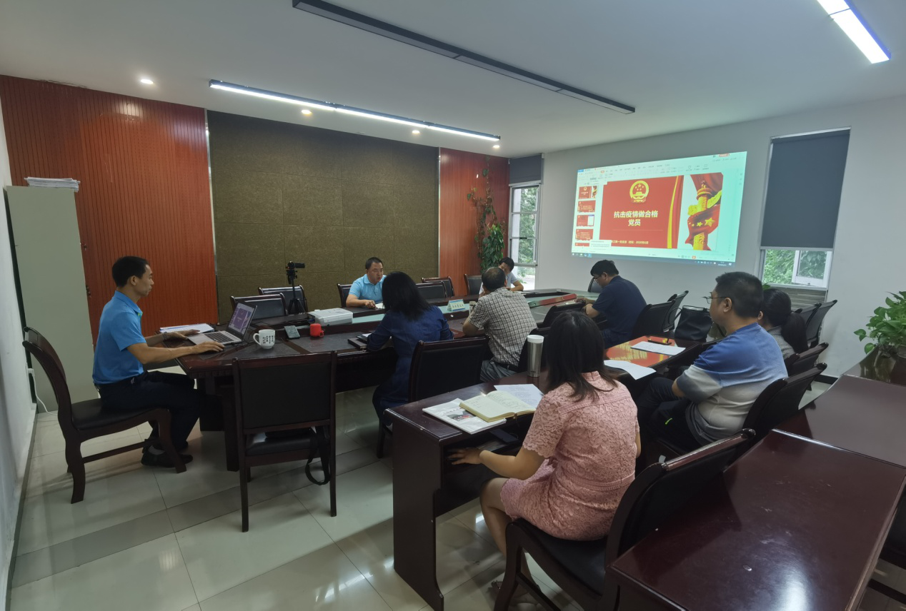 首先李宁同志对本支部这学期的建设情况进行了总结。教工一支部在新型冠状肺炎疫情防控的工作中、在脱贫攻坚的活动中都积极发挥了共产党员的先锋模范带头作用。今年是中国共产党建党99周年,为深入学习贯彻习近平新时代中国特色社会主义思想,不断巩固拓展“不忘初心,牢记使命”主题教育成果,增强党性修养,坚定理想信念,李宁同志给本支部全体党员做了题为“抗击疫情,做合格党员”的专题党课。他生动形象地从“疫情战场对党员的要求”、“如何做疫情战场的合格党员”、“在疫情防控中争当合格党员”、“守初心、担使命、打赢疫情防控阻击战”四个方面传达了党员新时代精神,