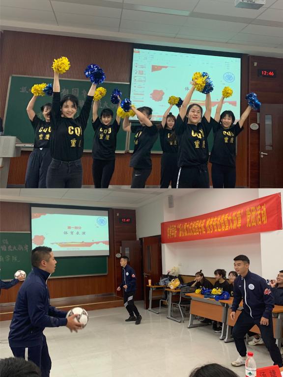 活动以表现专业特色,体现重大体育人精神的特色体育表演为开端;然后是“重大”知多少趣味问答环节,同学们积极参与现场气氛热烈;接下来进行校歌合唱,激起大家内心对学校的感恩和热爱之情,将重大体育人的心与学校紧紧联系在一起;最后进行的是此次活动的重点“庆祖国华诞、谱重大新篇”主题微视频比赛,52AV