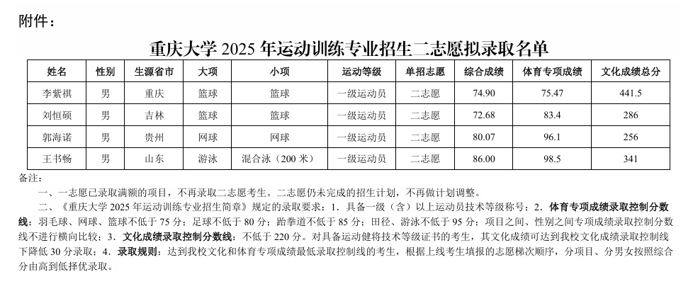 此次招生涵盖羽毛球、网球、田径、游泳、跆拳道、篮球、足球、射击、越野滑雪多个项目,充分彰显了学院项目设置的丰富性与多样性,更凸显了其在竞技体育与学科建设深度融合中的创新实践。在本次国家体育总局科教司2025年优秀运动员本科保送拟推荐名单公布中,中国越野滑雪领军人物、国际级运动健将王强凭借其辉煌的职业战绩(包括亚冬会两金、十四冬“五金”及作为重庆首位冬奥选手等荣誉)获得保送资格。