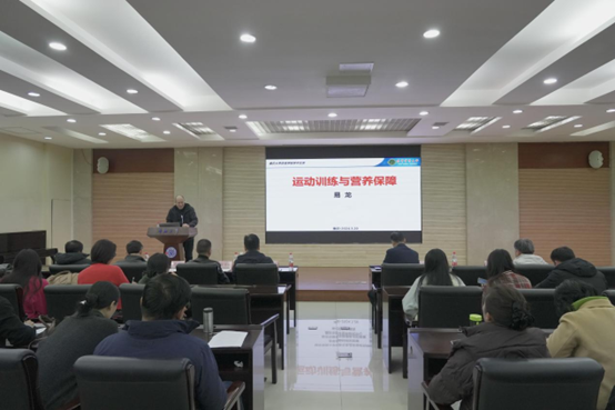 易龙教授以“运动训练与营养保障”为主题展开讲座。他以“营养”的概念为切入口,结合运动医学与营养学的最新研究,系统讲解了运动训练和营养保障措施的协同效应。