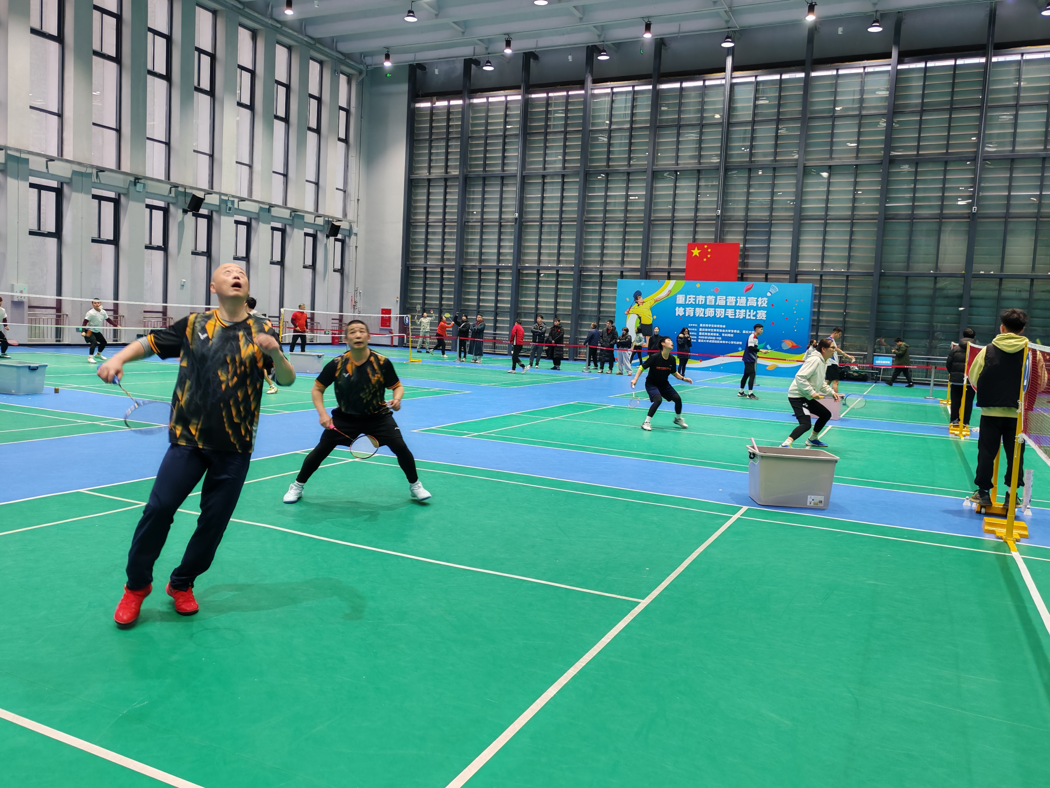 2025年1月10日—11日,重庆市首届普通高校体育教师羽毛球比赛在52AV 体育中心羽毛球馆举行。本次比赛主办单位重庆市学生体育协会,承办单位重庆市学生体育协会大学专委会、52AV 。吸引了52AV 、西南政法大学、重庆医科大学、陆军勤务学院等重庆市各高等本、专科院校28个单位报名,含各领队、教练、运动员(各高校在职体育教师)共200余人参加