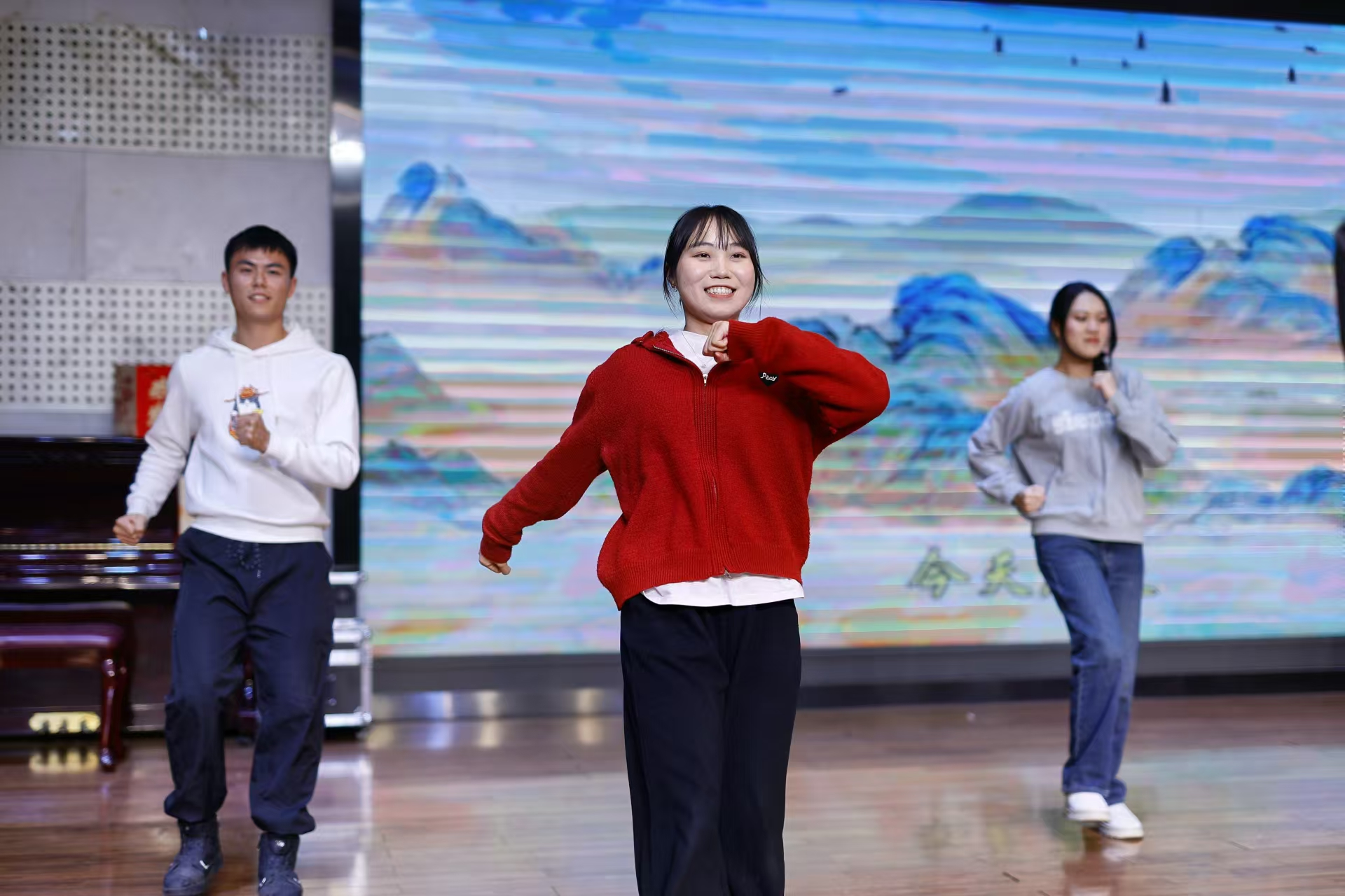 第二个节目为汤婕与周任洁两位老师带来的排舞表演。该节目曾获得重庆市首届高校教职工健康活力大赛第一名。