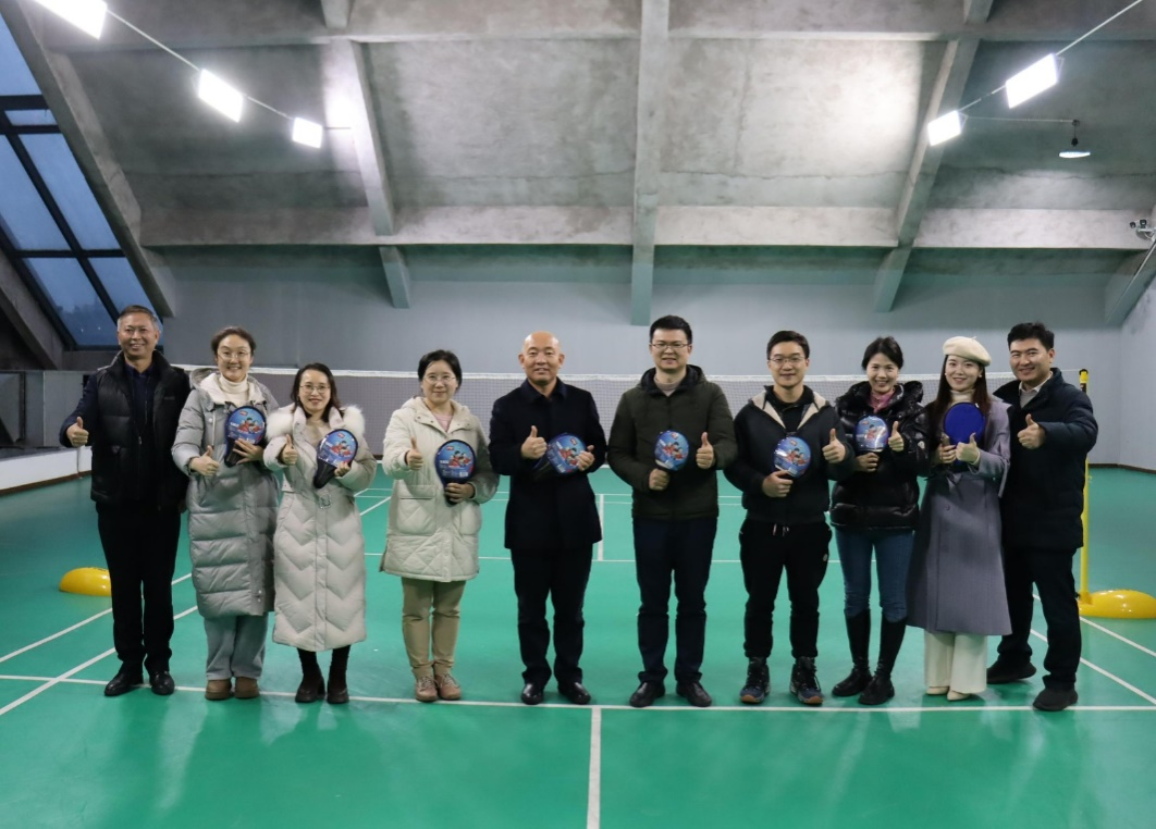 在参观和交流之后,52AV 的吉淑婷老师(羽毛球世界冠军)与卓越工程师学院的师生进行了一场别开生面的羽毛球友好切磋与交流活动。最后,52AV 的田辉书记与刘斌院长向卓越工程师学院的领导和老师们赠送了乒乓球拍。本次活动不仅增进了两个学院之间的友谊,还促进了体育与工程学科的交流与融合。大家在轻松愉快的氛围中,感受到了体育的魅力和团队合作的重要性,进一步加深了对中国式现代化中体育与工程相互促进、共同发展的理解。