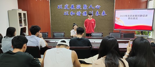 本科生党支部在学院211会议室召开了党员的发展征求群众意见会。2020级全体本科生参加。会议由本科生党支部书记汤婕主持。