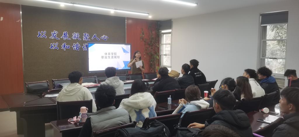 召开了本科2019级全体学生职业生涯规划培训会。会议由本科生辅导员、学院学生生涯指导老师汤婕主讲。