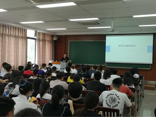 第三个作就业分享的是手拿多个offer的2016级的曹瑞,他从自己休学创业的经历,如何制作瞬间出众的简历,总结出了多投多面多总结三个找工作的经验,同时他还向大家讲述了如何找到一份专业不对口的工作、公务员选调生考试和入岗前的准备工作,给在座以后准备从事非专业相关工作的同学提供了众多经验。