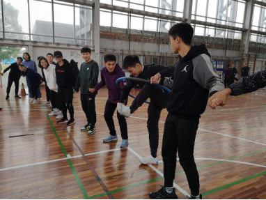 本次素质拓展将2018级学生随机分为两队,以小组为单位开展活动,活动内容主要有“人的进化”、“智传呼啦圈”、“众星捧月”、“新四子棋”四个板块的比赛项目。在活动中每队队员互帮互助、积极沟通,所有人都全身心的投入其中,完成每一项挑战。许定国和李永两位老师也在关键时刻对同学们给予提醒,帮助学生进行总结分析,现场气氛热烈融洽,欢声笑语充满了整个体育馆。