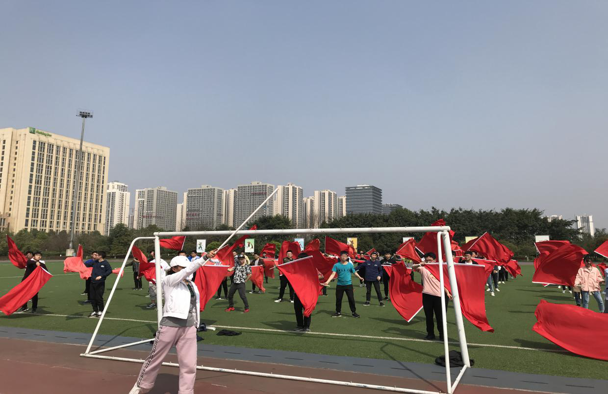 的师生只能利用中午午休时间组织学生进行合排。重庆的三月天中午达到20多度,师生们顶着热辣的太阳在操场上每天挥汗如雨,甚至有时冒着蒙蒙细雨依然坚持排练,真可谓是风雨无阻。同学们听从指挥,刻苦训练,整齐划一,喜迎“双庆”,展重大学子风采。