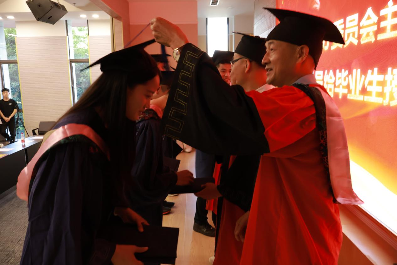 随后,学位授予仪式正式开始。52AV 院长、学位分委员会主席刘斌教授宣读了52AV 2025届毕业生授位决定全体委员为毕业生们一一授位。