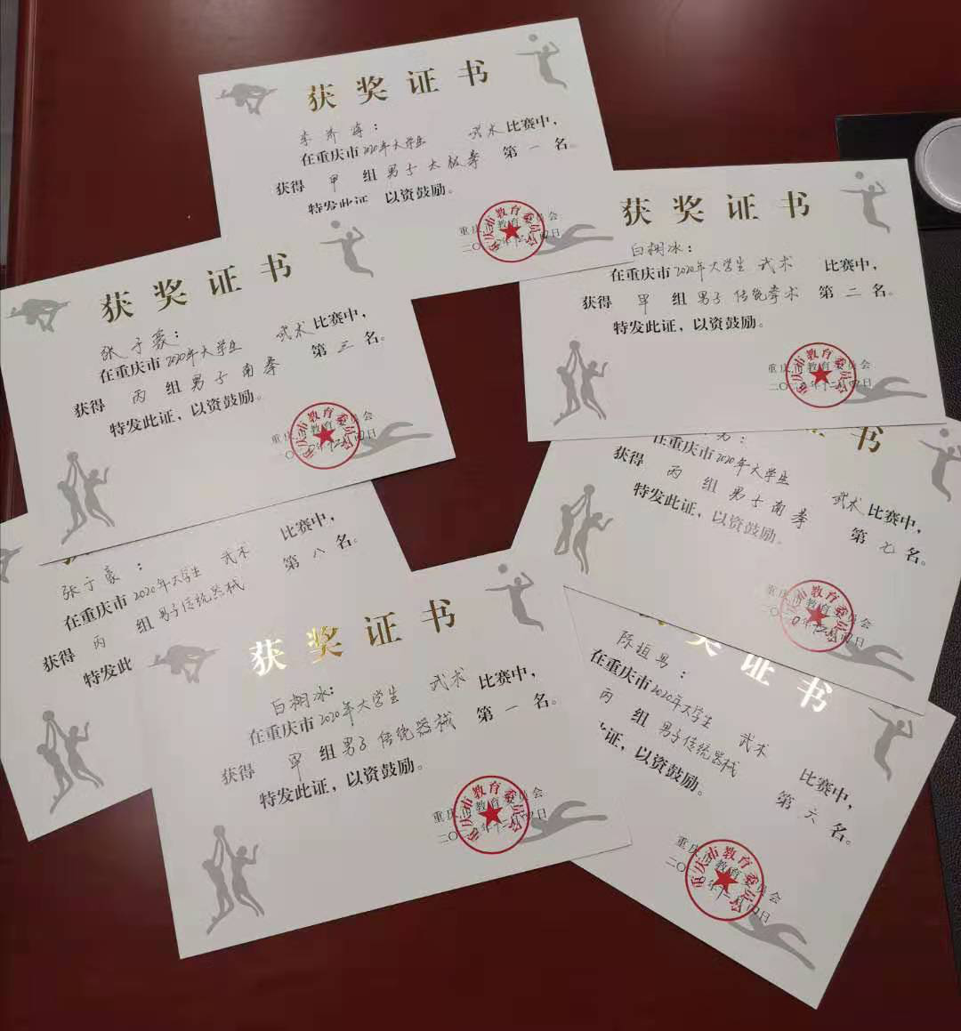 武术代表队获得个人项目男子甲组太极拳第一名、男子甲组传统器械第一名、男子甲组传统拳术第二名、男子丙组南拳第三名、第七名,男子丙组传统器械第六名、第八名的好成绩。参赛的所有项目全部进入前八名,并获得四项前三名的佳绩。虽然时间紧,参赛人数少,但52AV