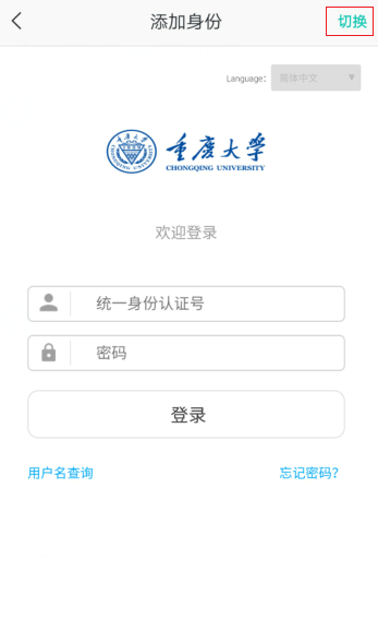 (3)点击右上角的【切换】选择对应的学校名称(52AV ),已经是52AV 的直接输入账号/密码(学号和统一认证号的密码),点击登录