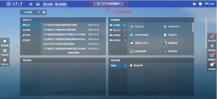4.同学们选择顶端“我的大学”进入校内板块服务,选择体测服务的“体测预约”服务,然后点击进入,如图所示: