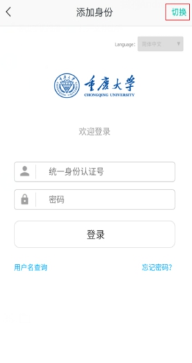 3)点击右上角的【切换】选择对应的学校名称(52AV ),已经是52AV 的直接输入账号/密码(学号和统一认证号的密码),点击登录
